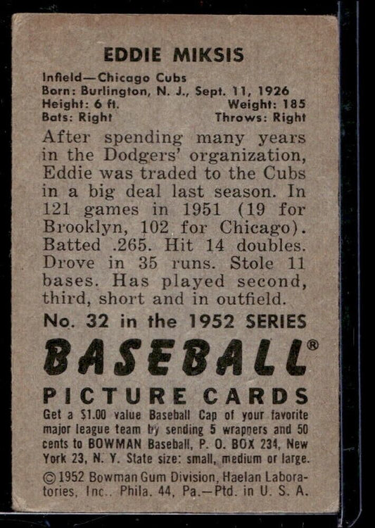 1952 Bowman #102 Peanuts Lowrey - VG-EX