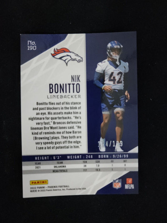 2022 Phoenix Football Pink #190 Nik Bonitto Rc Broncos /199