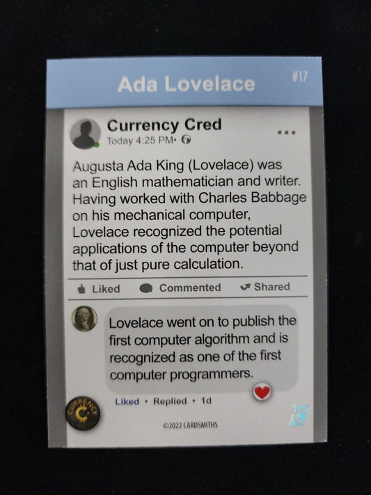 2022 Cardsmiths Currency 1st Edition ADA LOVELACE #17 Rookie RC Currency