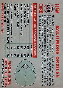 1956 Topps #100A Baltimore Orioles TC Centered - Vg+