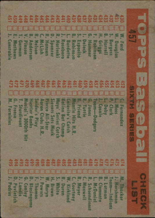 1959 Topps #457 Los Angeles Dodgers CL - NM