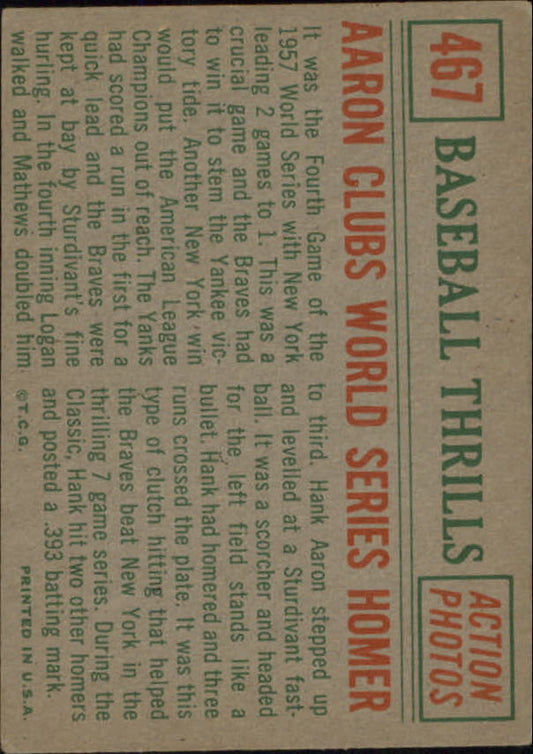 1959 Topps #467 Hank Aaron BT WS Homer - NM