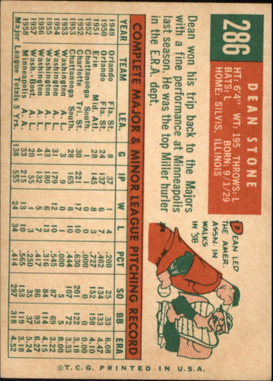 1959 Topps #286 Dean Stone - NM
