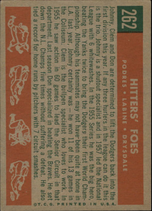 1959 Topps #262 Hitters Foes Johnny Podres Clem Labine Don Drysdale - NM