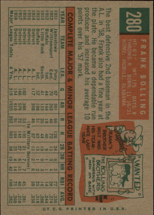 1959 Topps #280 Frank Bolling - NM