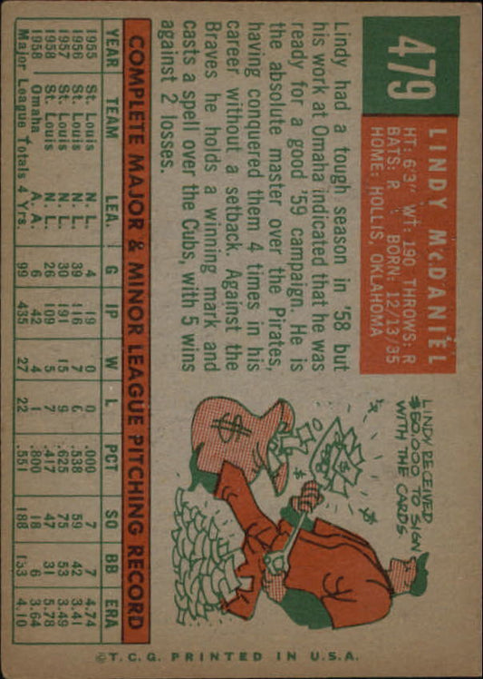 1959 Topps #479 Lindy McDaniel - NM