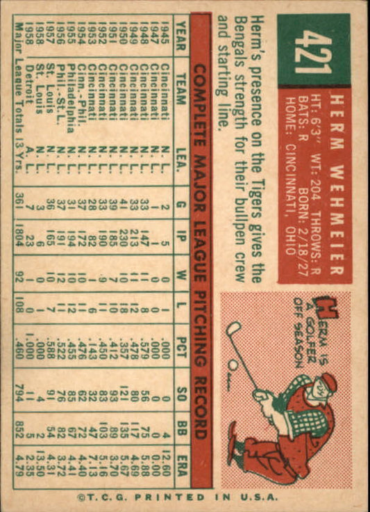 1959 Topps #421 Herman Wehmeier - NM