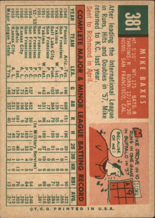 1959 Topps #381 Mike Baxes - NM