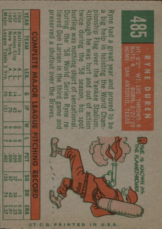 1959 Topps #485 Ryne Duren - NM