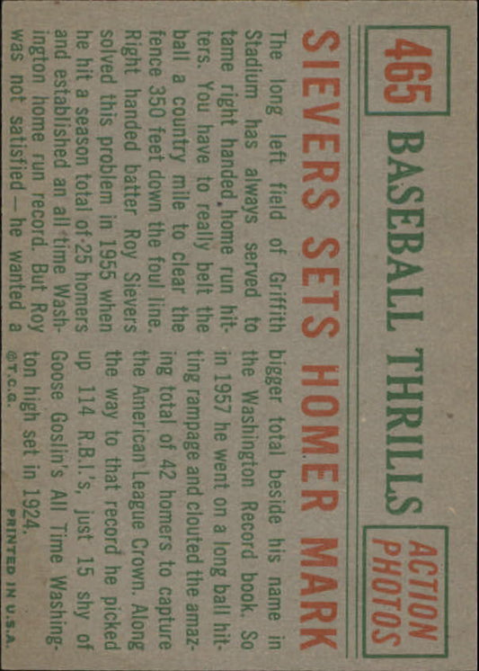 1959 Topps #465 Roy Sievers BT Homer Mark - NM