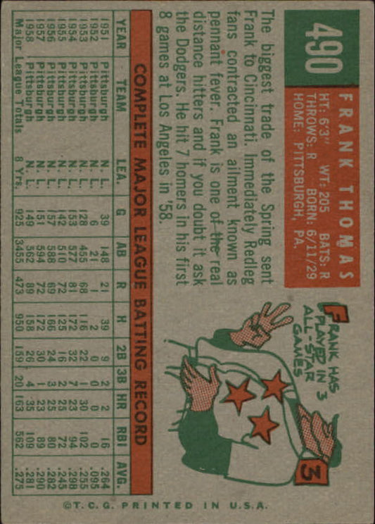 1959 Topps #490 Frank Thomas - NM