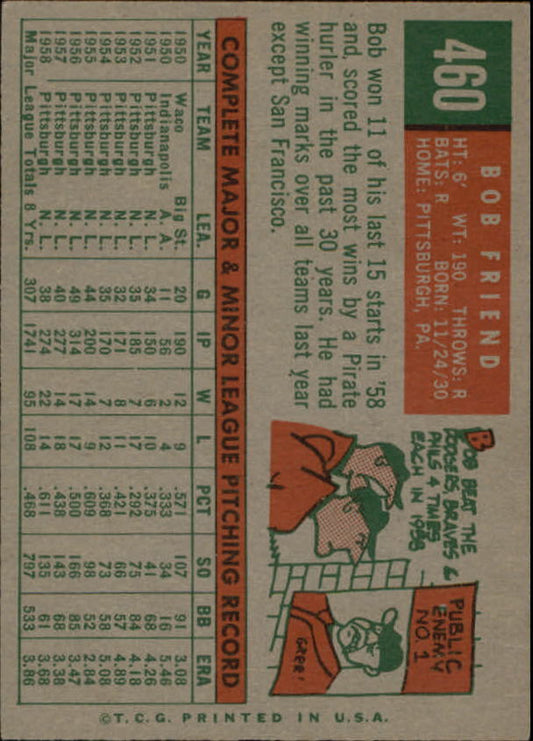 1959 Topps #460 Bob Friend - NM