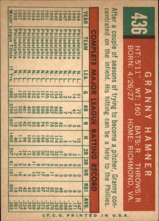 1959 Topps #436 Granny Hamner - NM