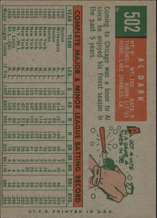 1959 Topps #502 Alvin Dark - NM