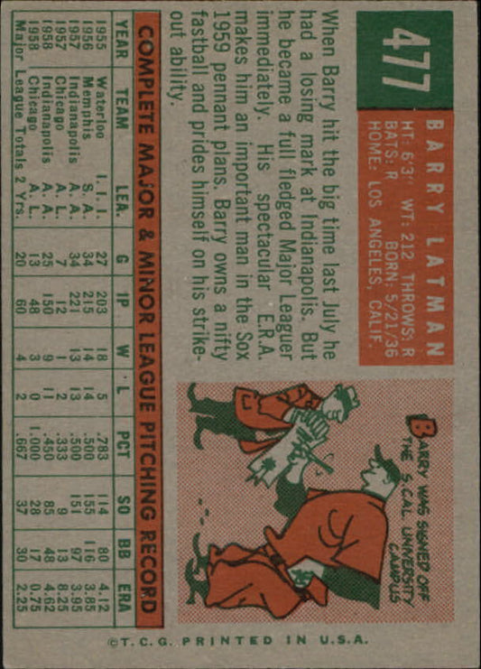 1959 Topps #477 Barry Latman RC - NM