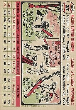 1956 Topps #27 Nelson Burbrink DP RC - NM