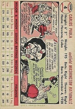1956 Topps #4 Carlos Paula - NM