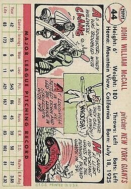 1956 Topps #44 Windy McCall - NM