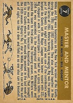 1960 Topps #7 Master and Mentor Willie Mays Bill Rigney MG - Ex+