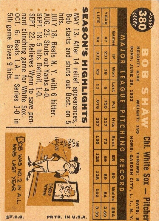 1960 Topps #380 Bob Shaw - Ex+