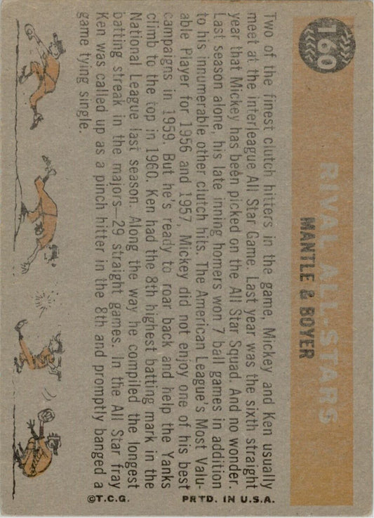 1960 Topps #160 Rival All-Stars Mickey Mantle Ken Boyer - Ex+