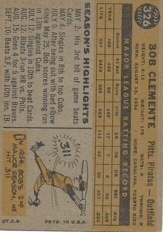 1960 Topps #326 Roberto Clemente - Ex+