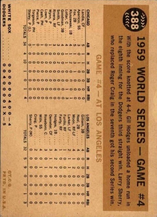 1960 Topps #388 World Series Game 4 Gil Hodges Winning Homer - Ex+
