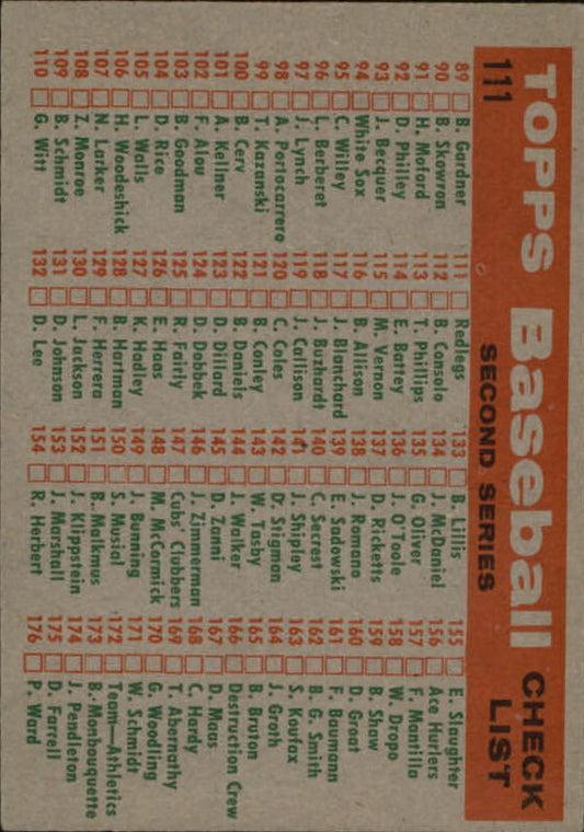 1959 Topps #172 Kansas City Athletics CL - Vg+