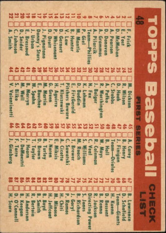 1959 Topps #48 Baltimore Orioles CL - Vg+