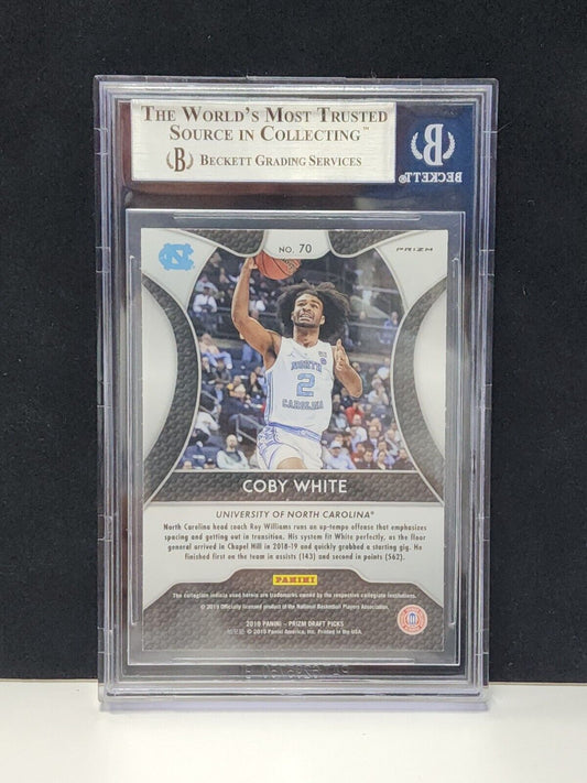 2019-20 Prizm Draft Picks Coby White Silver Prizm Rookie Card RC #70 Beckett 8.5