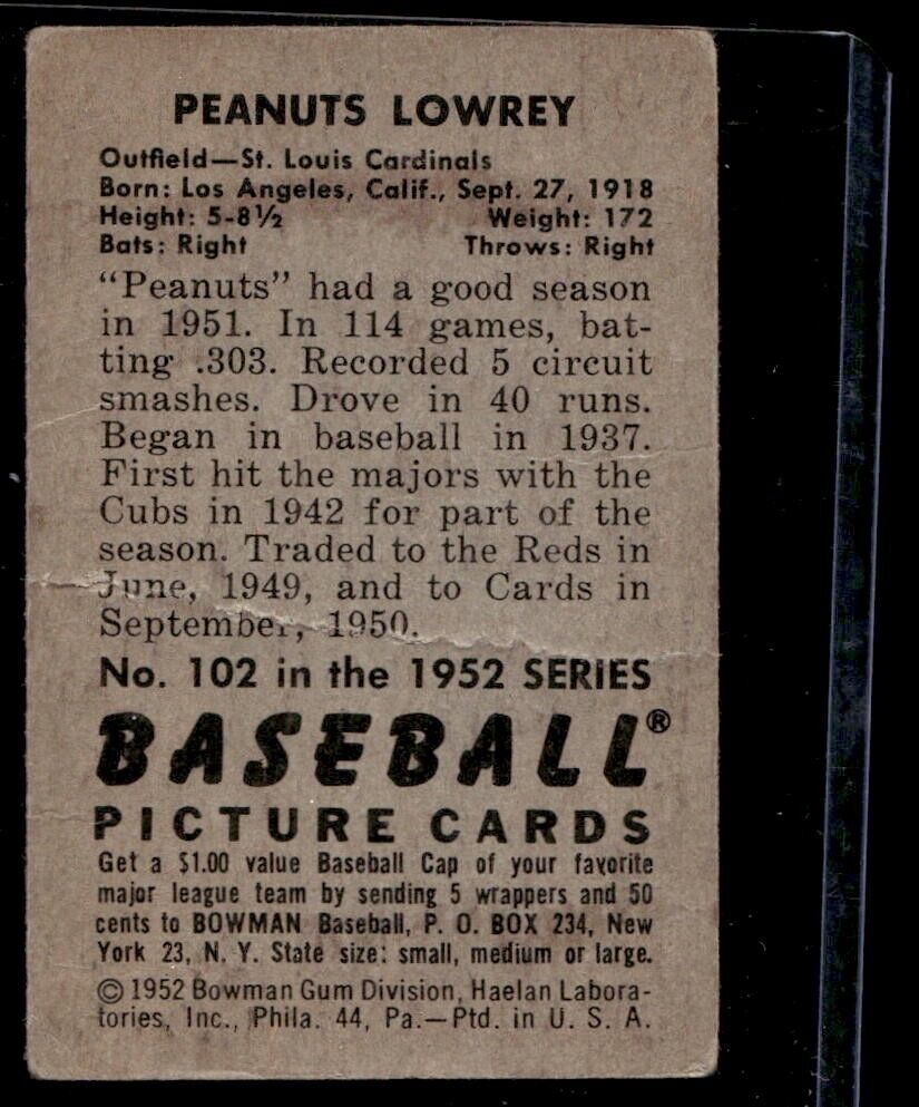 1952 Bowman #102 Peanuts Lowrey - VG-EX