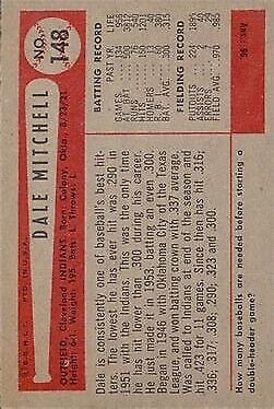 1954 Bowman #148 Dale Mitchell - NM