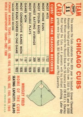 1956 Topps #11A Chicago Cubs TC Centered - Vg+