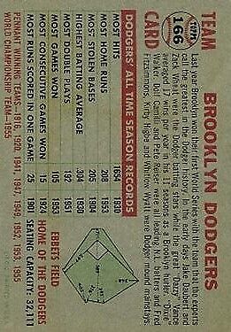 1956 Topps #166 Brooklyn Dodgers TC - Vg+