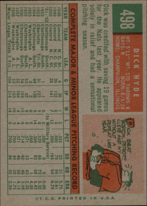 1959 Topps #498 Dick Hyde - NM