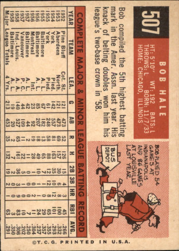 1959 Topps #507 Bob Hale - NM