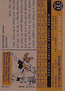 1960 Topps #121 Camilo Carreon RS RC - Ex+