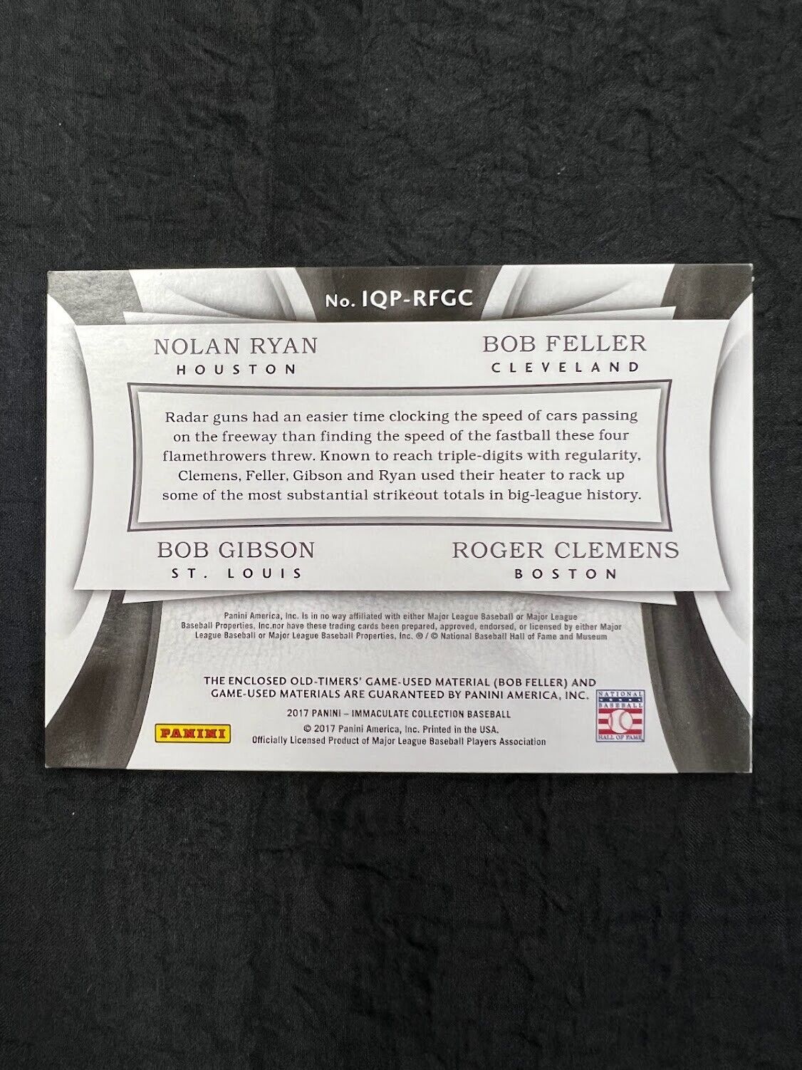 2017 Panini Immaculate Collection Ryan Gibson Feller Clemens Quad Jersey /49