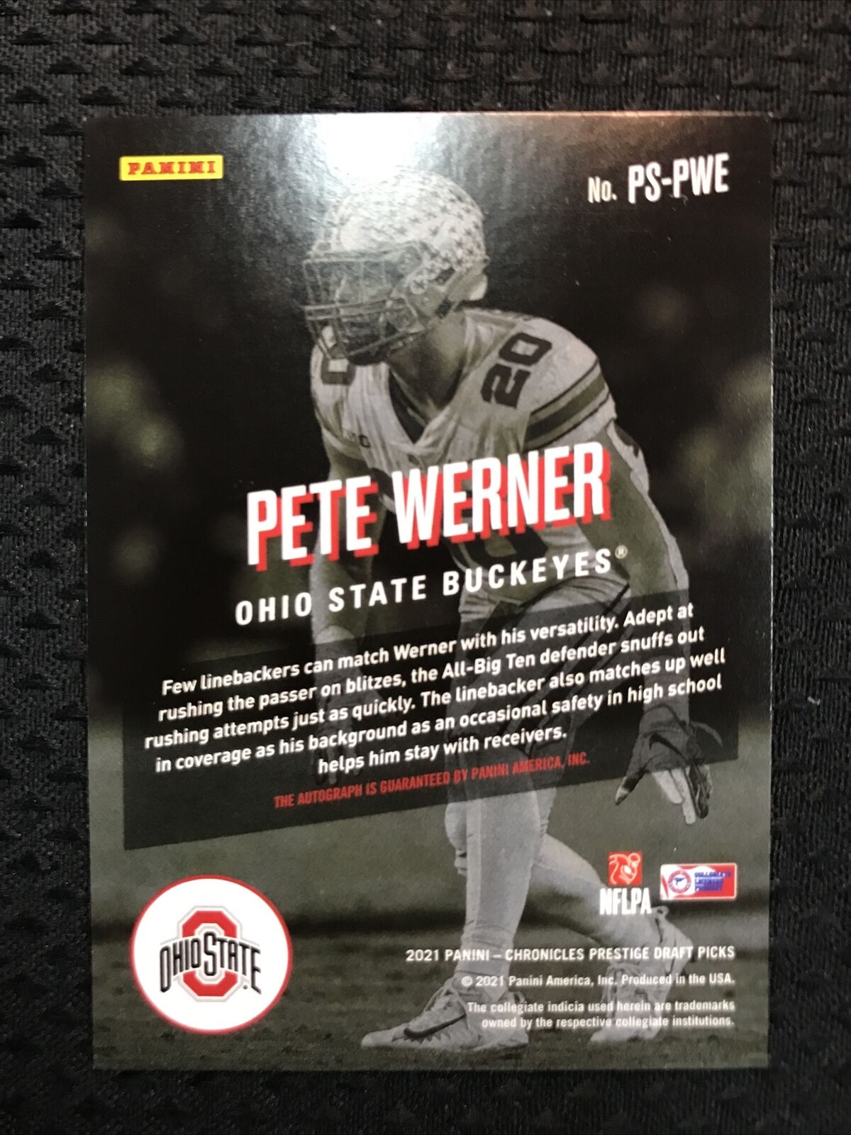 2021 PANINI CHRONICLES DRAFT PICKS #PS-PWE PETE WERNER PRESTIGE GREEN AUTO RC