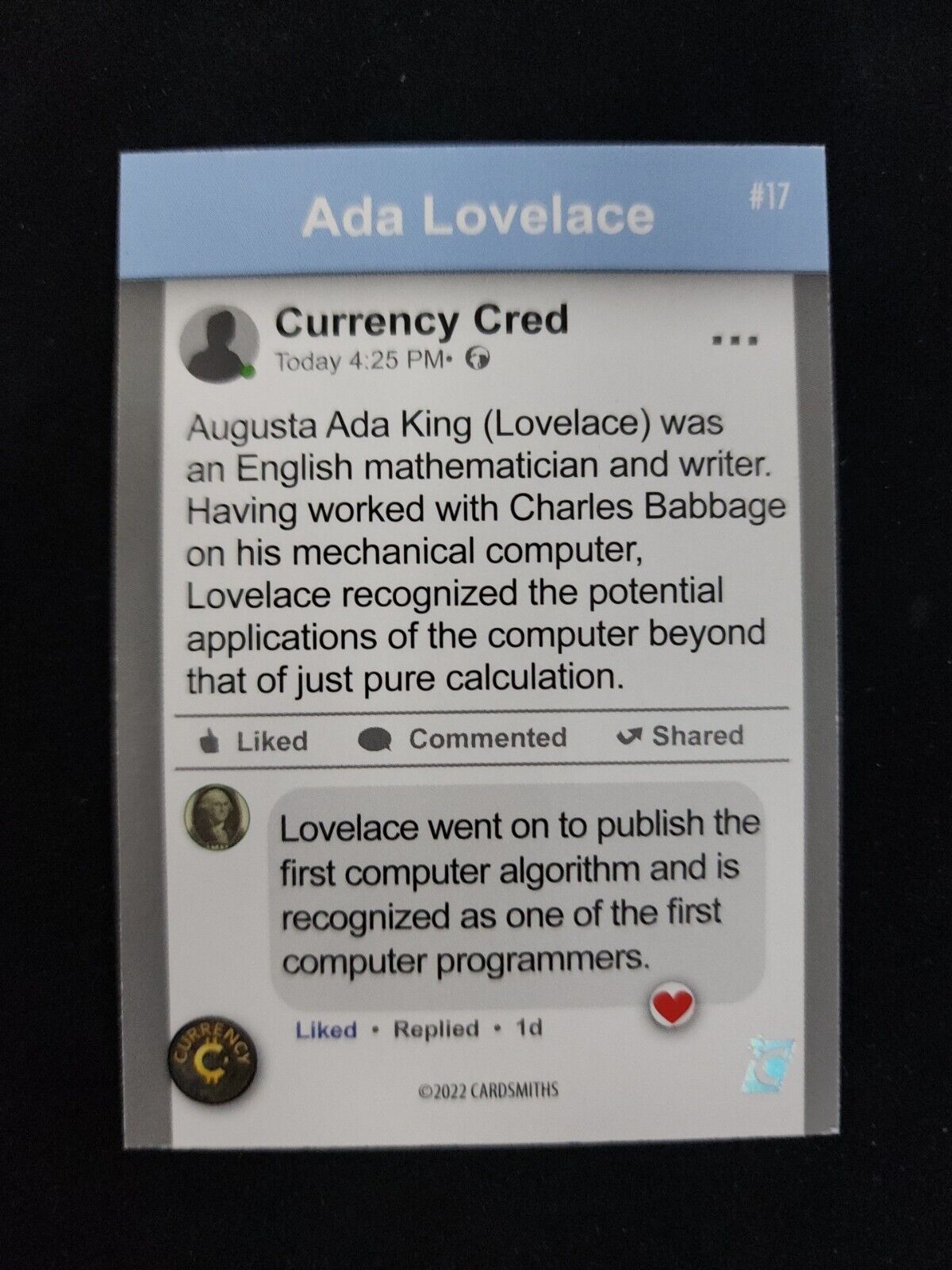 2022 Cardsmiths Currency 1st Edition ADA LOVELACE #17 Rookie RC Currency.