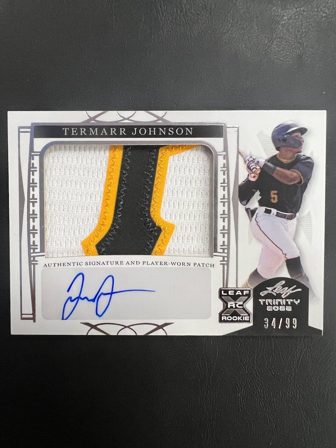 2022 Leaf Trinity Termarr Johnson Patch auto 34/99 Pirates 3 Color Patch J