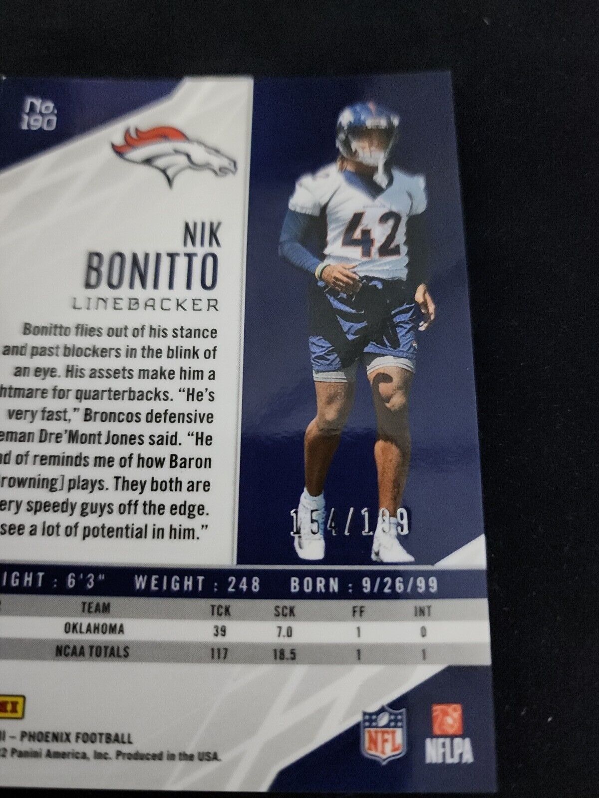 2022 Phoenix Football Pink #190 Nik Bonitto Rc Broncos /199.