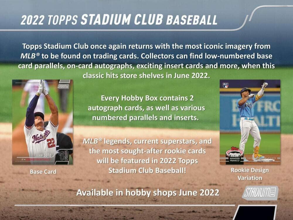 2022 Topps Stadium Club Baseball Hobby Box (16 Packs/8 Cards: 2 Autos)