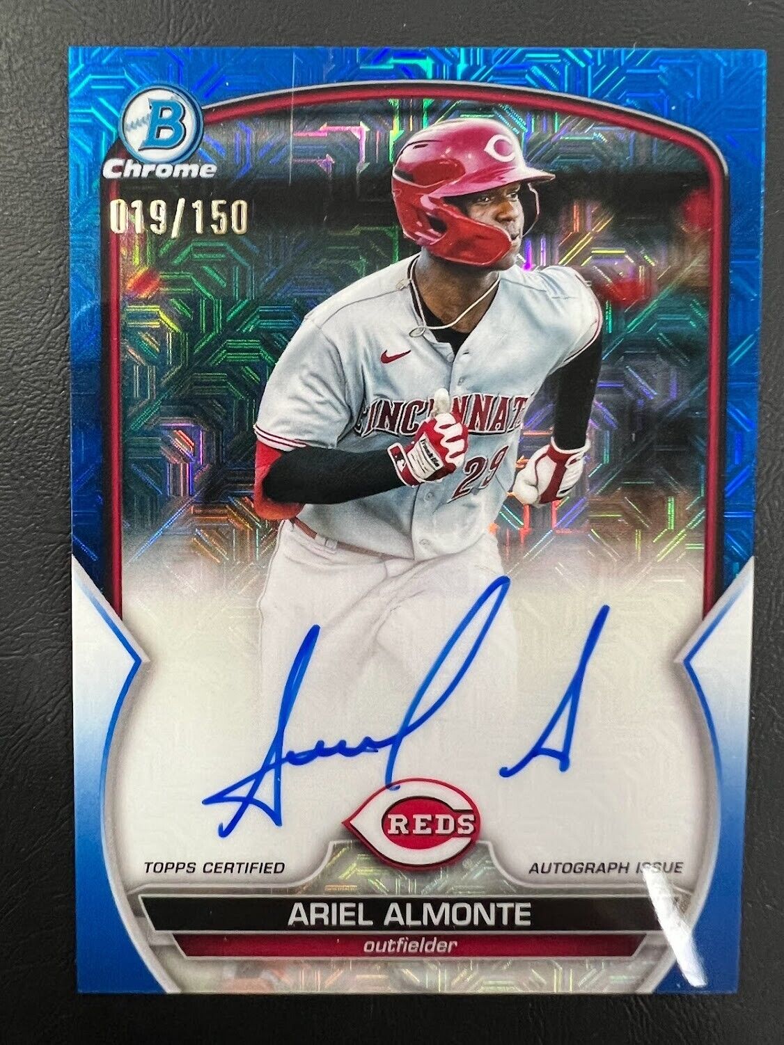 2023 Bowman Chrome Ariel Almonte Auto Mega Box Blue /150 Mojo Refractor BMA-AA J