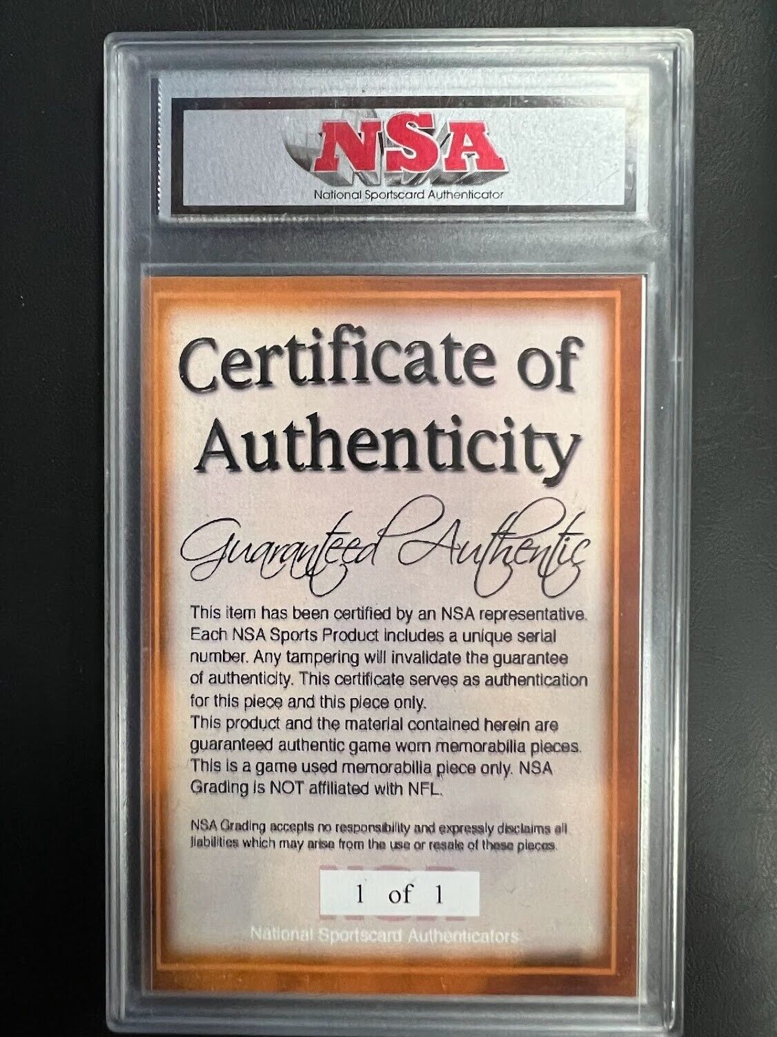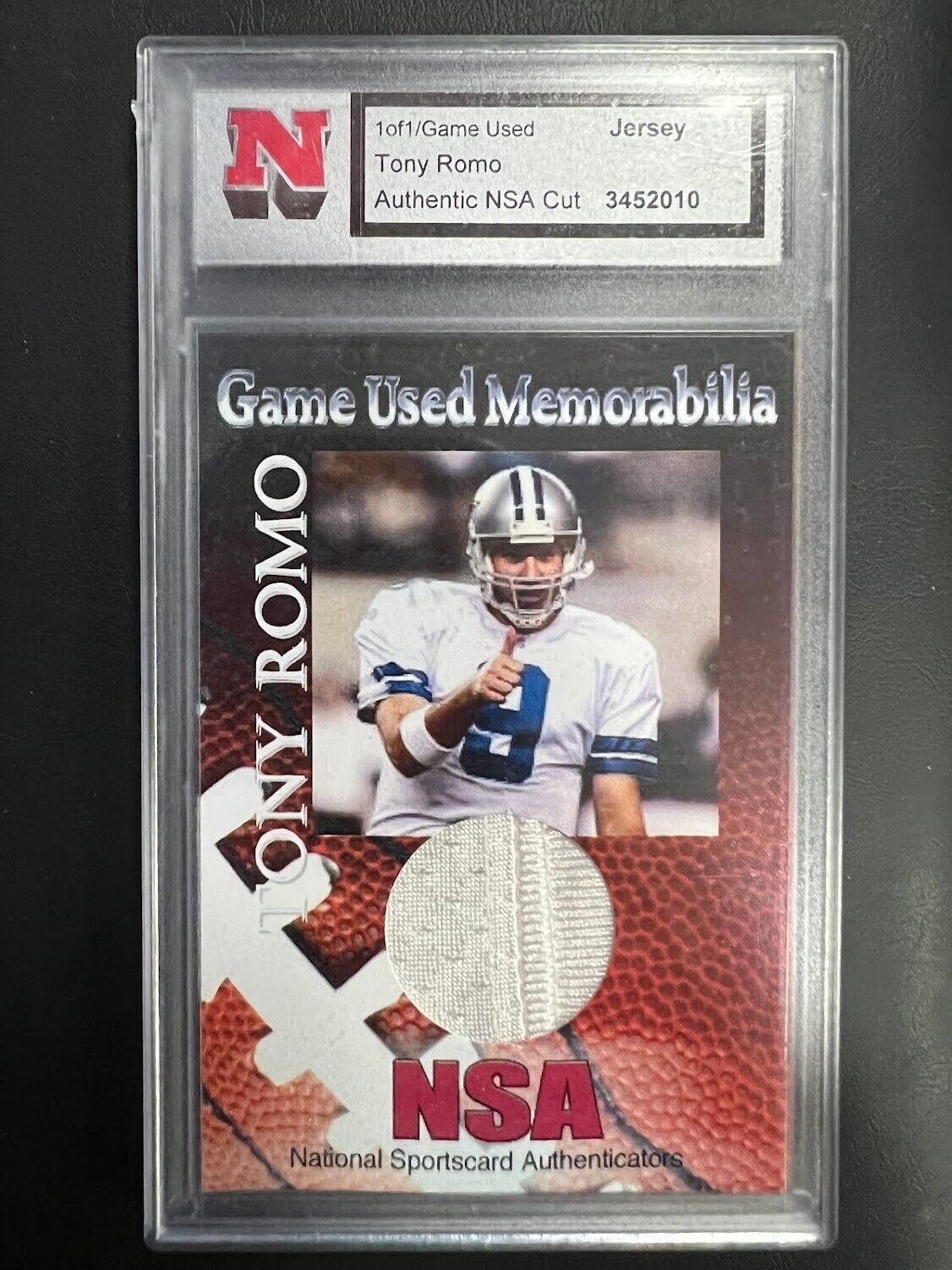 National Sportcard Authentication Tony Romo Game Used NSA Jersey patch 1/1 J