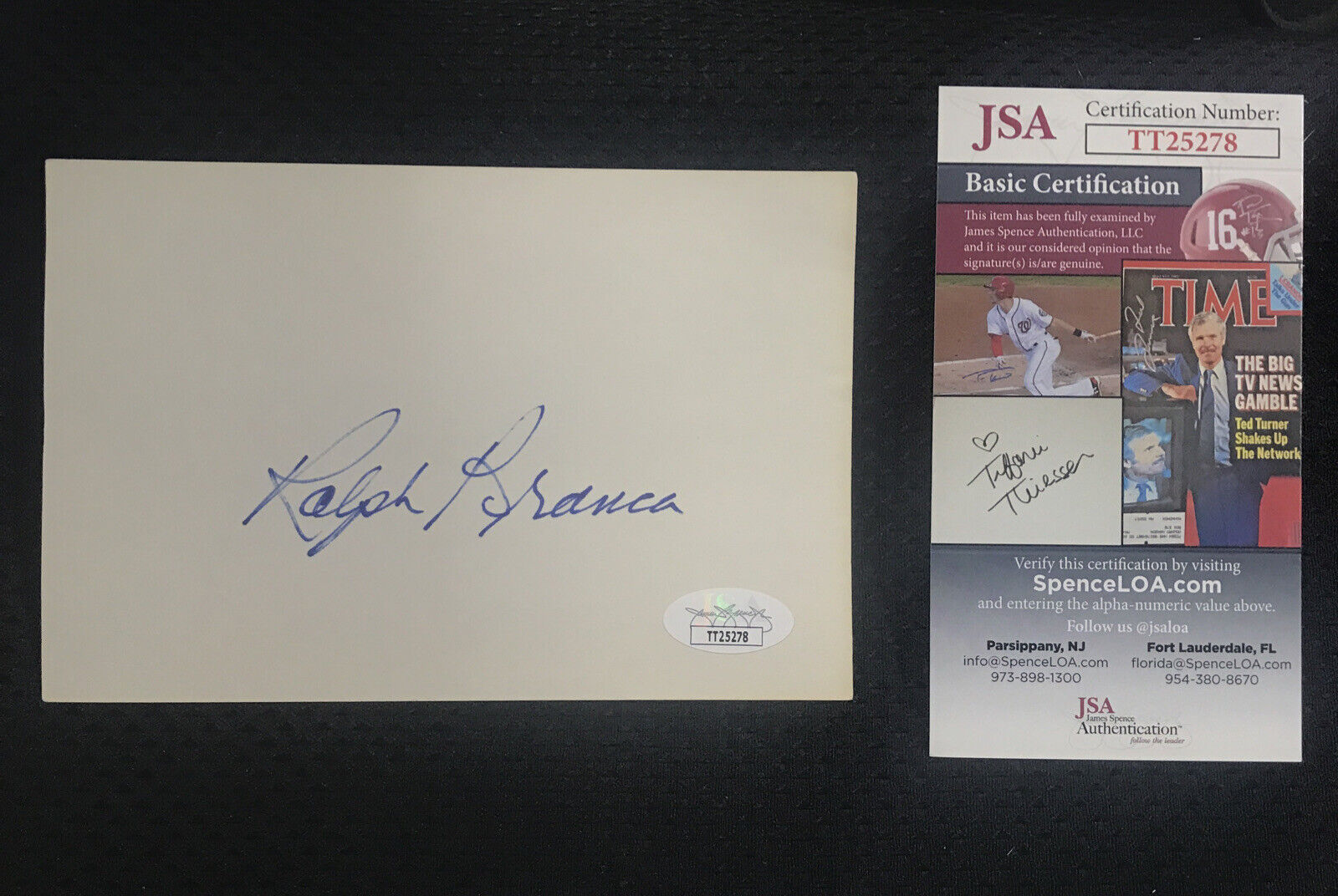 Ralph Branca d'2016 Signed 4x6 Index Card 1944-53 Brooklyn Dodgers JSA
